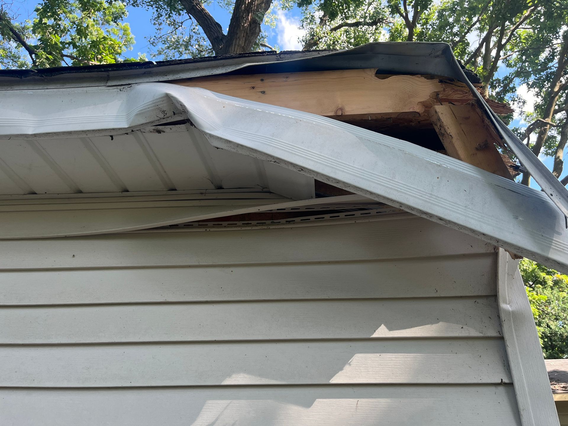 Squirrel damaged soffit? Rebuild and wrap in aluminum. Never touch it again.